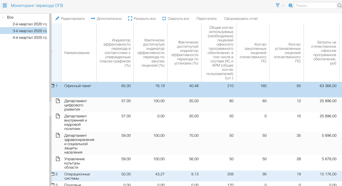 Решение для сбора данных, показателей и индикаторов эффективности в рамках мероприятий по переходу на использование отечественного программного обеспечения. Система позволит мониторить закупки и установки отечественного ПО и контролировать выполнение общего плана организационно-технических мероприятий для перехода государственных органов, ОИВ на отечественное ПО.