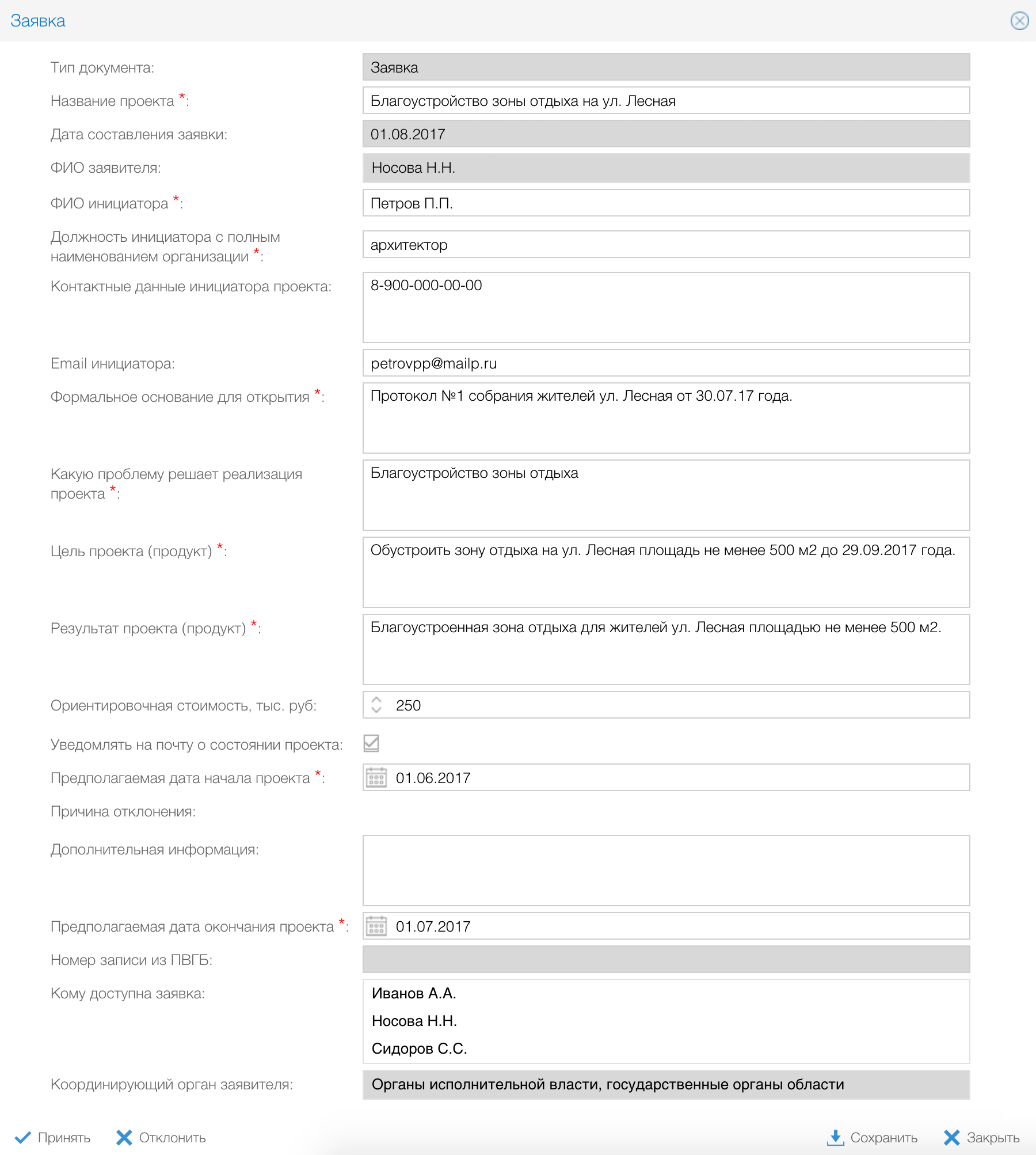 • рассмотрение инициативных заявок с возможностью маршрутизации;