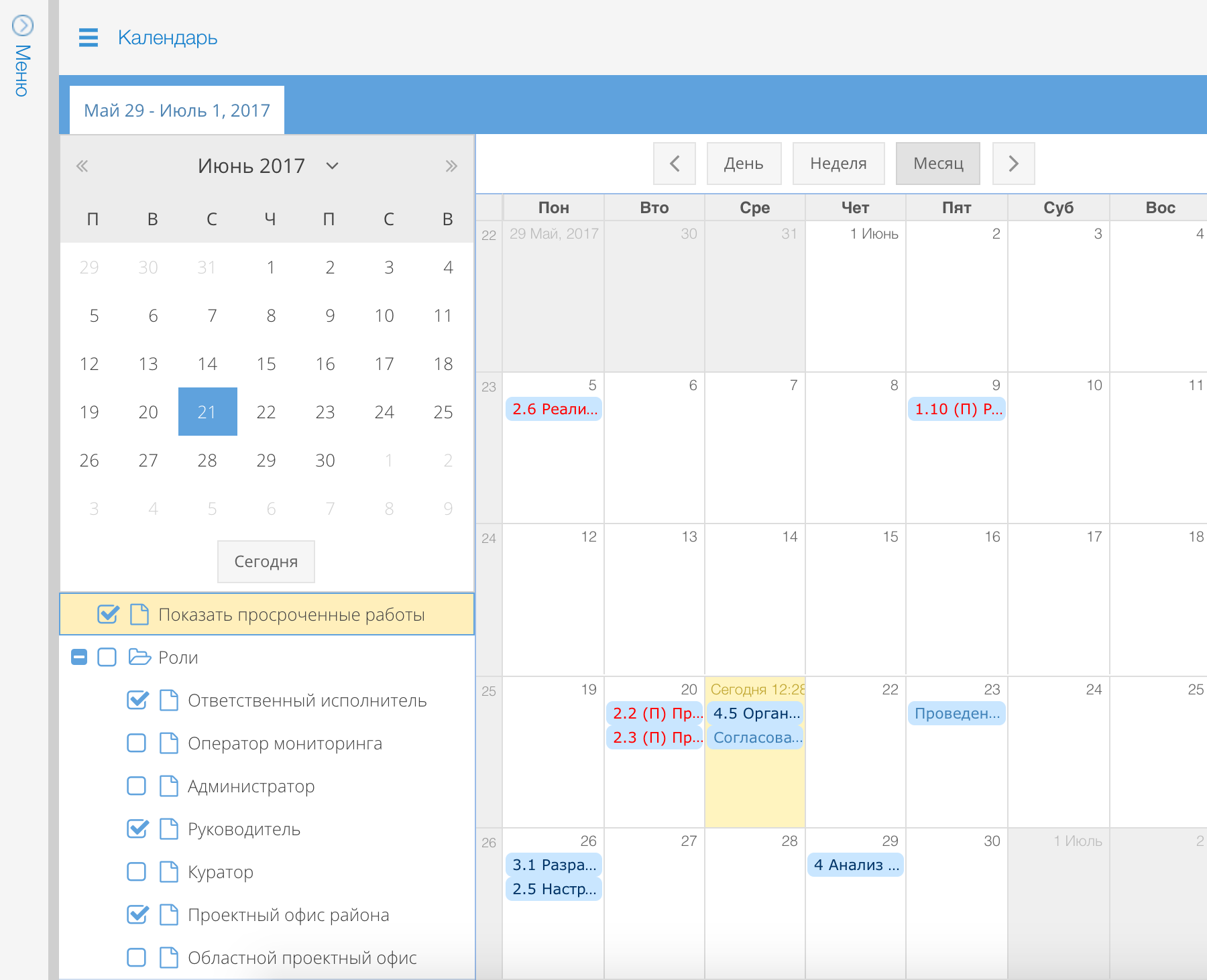 • индивидуальный календарь ближайших и просроченных задач пользователя;