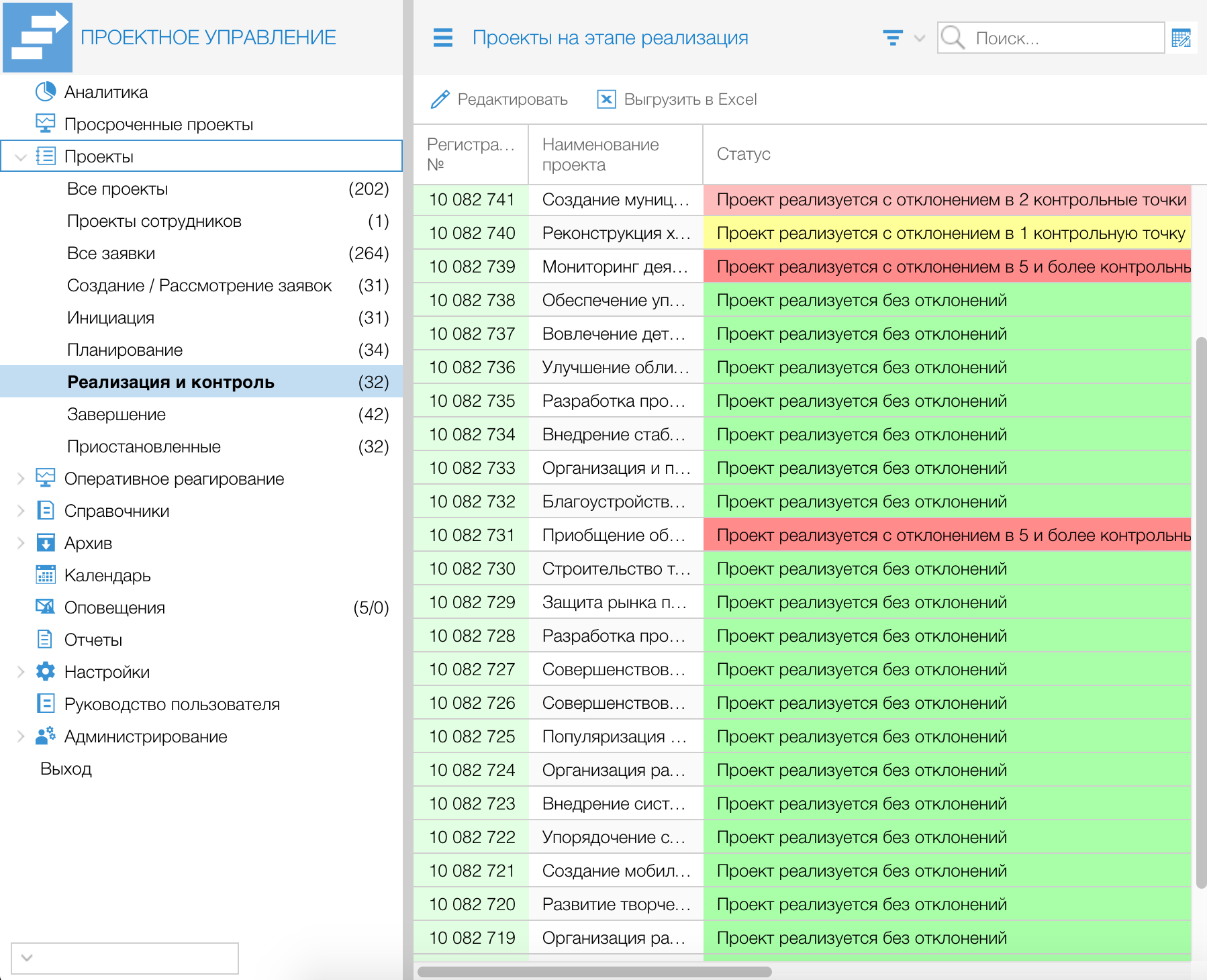 АИС «Проектное управление» — мощный инструмент помогающий совместной работе над проектами тысячам территориально удаленным пользователям. Система охватывает полный жизненный цикл проекта, от рассмотрения инициативной заявки, до отправки завершенного проекта в архив. В системе ежедневно регистрируют проекты со всевозможной тематикой. Единовременно на этапе непосредственной реализации находятся более 1000 проектов.