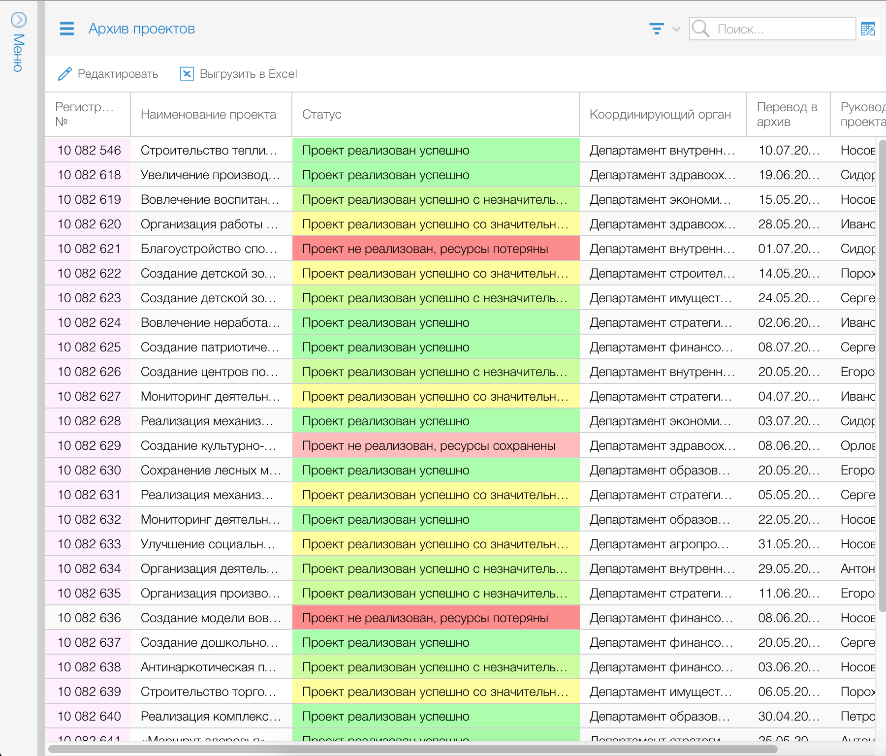 • хранение карточек завершённых или отправленных в архив проектов и программ;