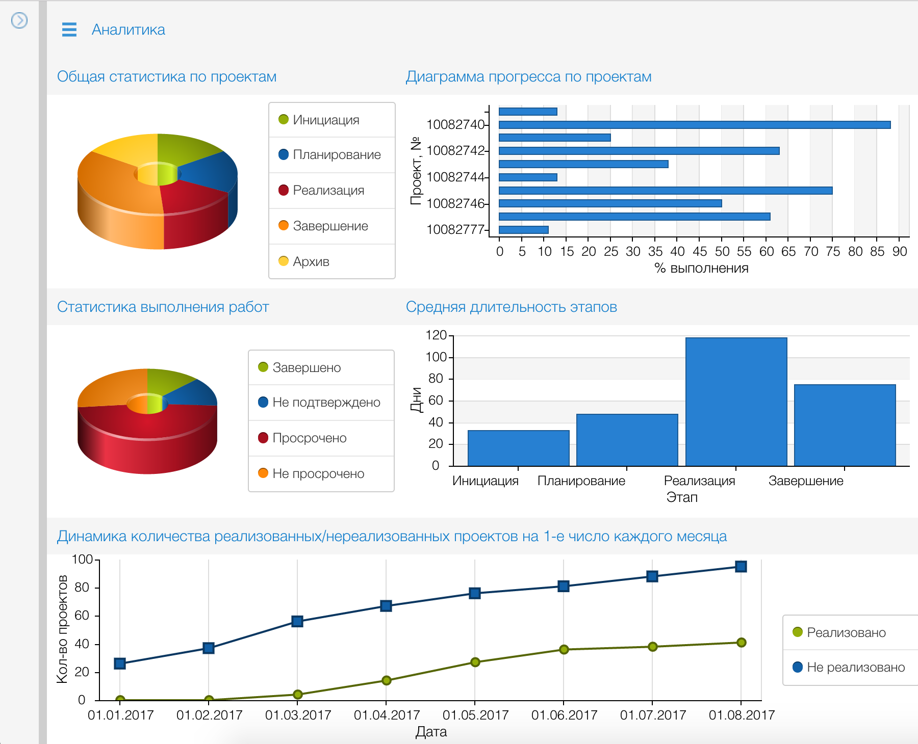• повышение эффективности реализации проектов за счёт обеспечения команд проектов актуальной, полной и достоверной информацией;