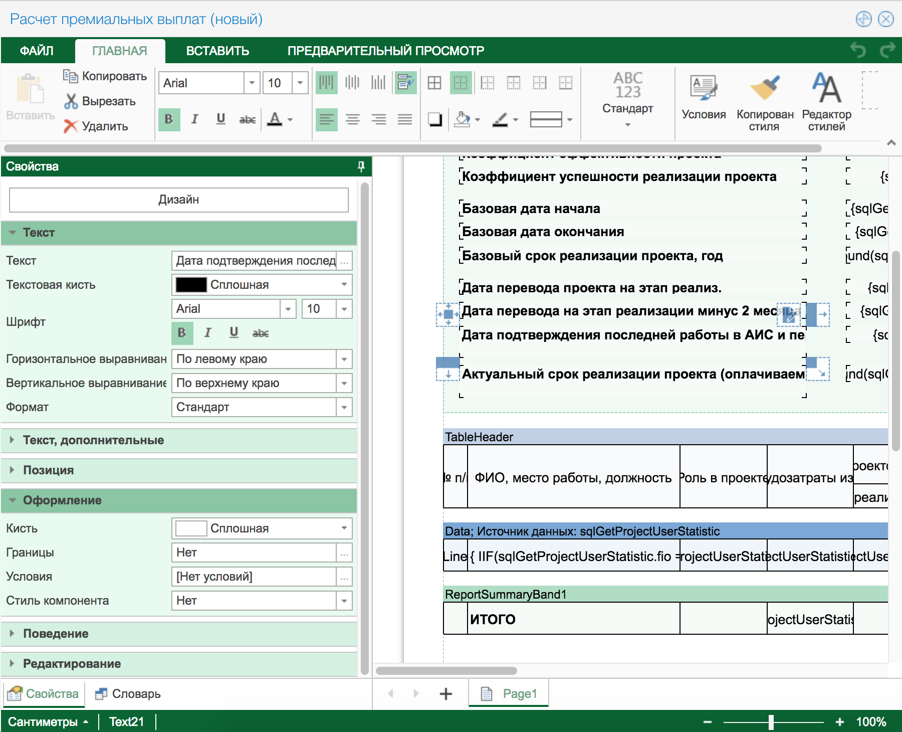 • редактирование существующих и создание новых отчётных форм, предназначенных для получения в различных разрезах полной и исчерпывающей информации о процессах, связанных с проектной деятельностью;