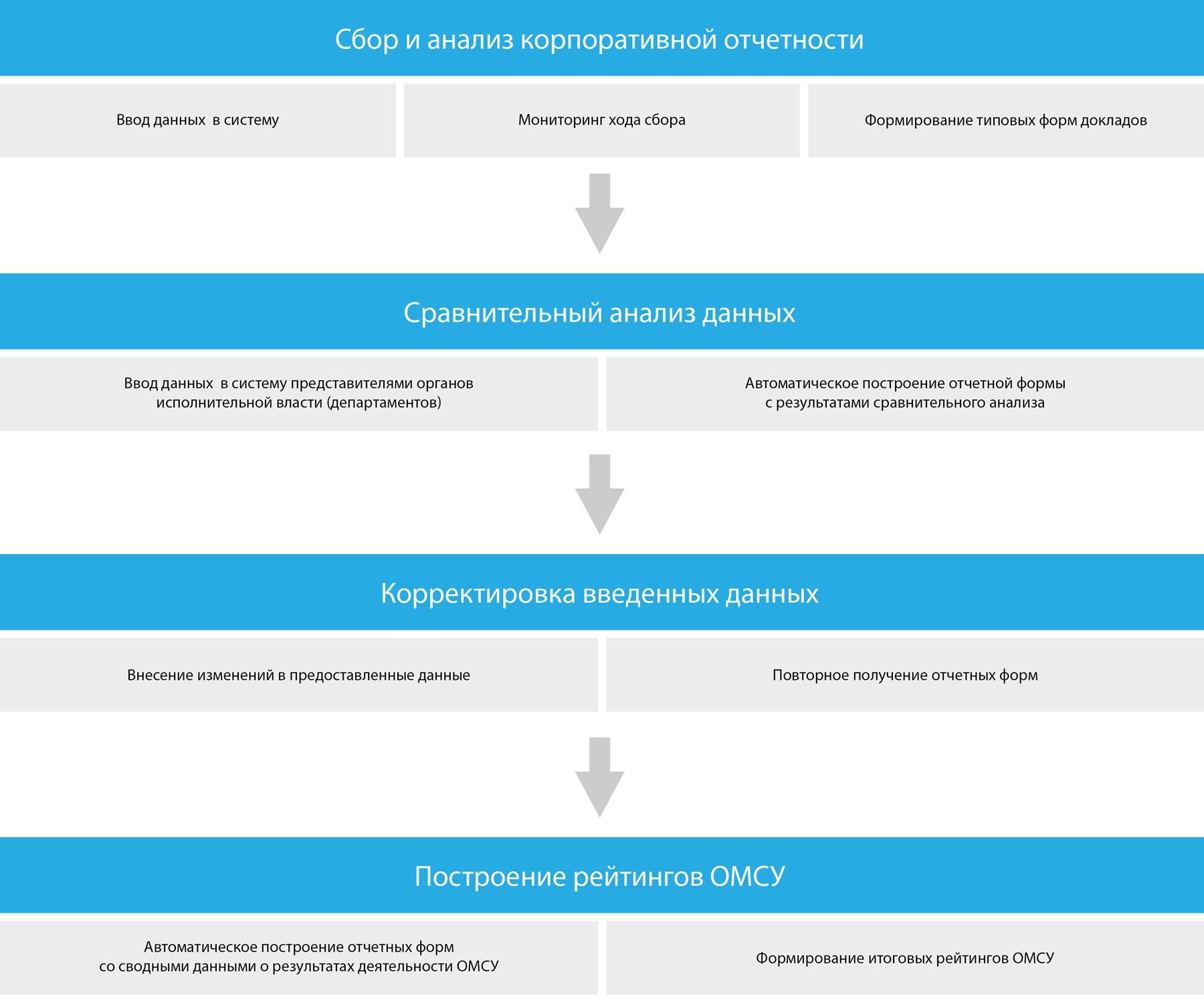 Пользователи вводят только исходные (первичные, необходимые для расчета результата) значения показателей. Отчетные данные рассчитываются автоматически. Это позволяет не только избавиться от необходимости предварительных расчетов по сложным формулам вне системы, но и снизить вероятность случайных или преднамеренных ошибок, которые могут возникнуть при непосредственном вводе итоговых значений.