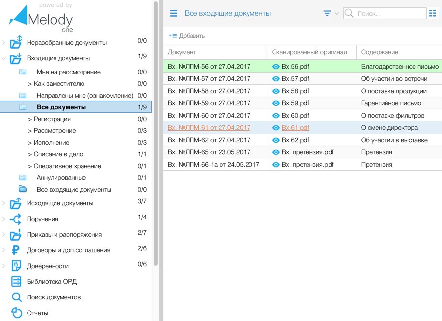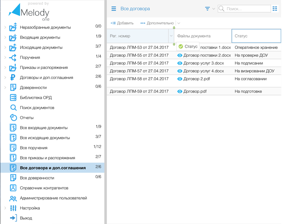 На базе платформы M1 возможно создание системы электронного документооборота, воплощающей в себе потребности в автоматизации процессов делопроизводства как небольших коммерческих компаний, так и крупных холдингов с разветвленной структурой или организаций госсектора. Платформа M1 обеспечивает надежное функционирование и гибкие настройки конфигурации СЭД, адаптированной под специфику конкретного заказчика.