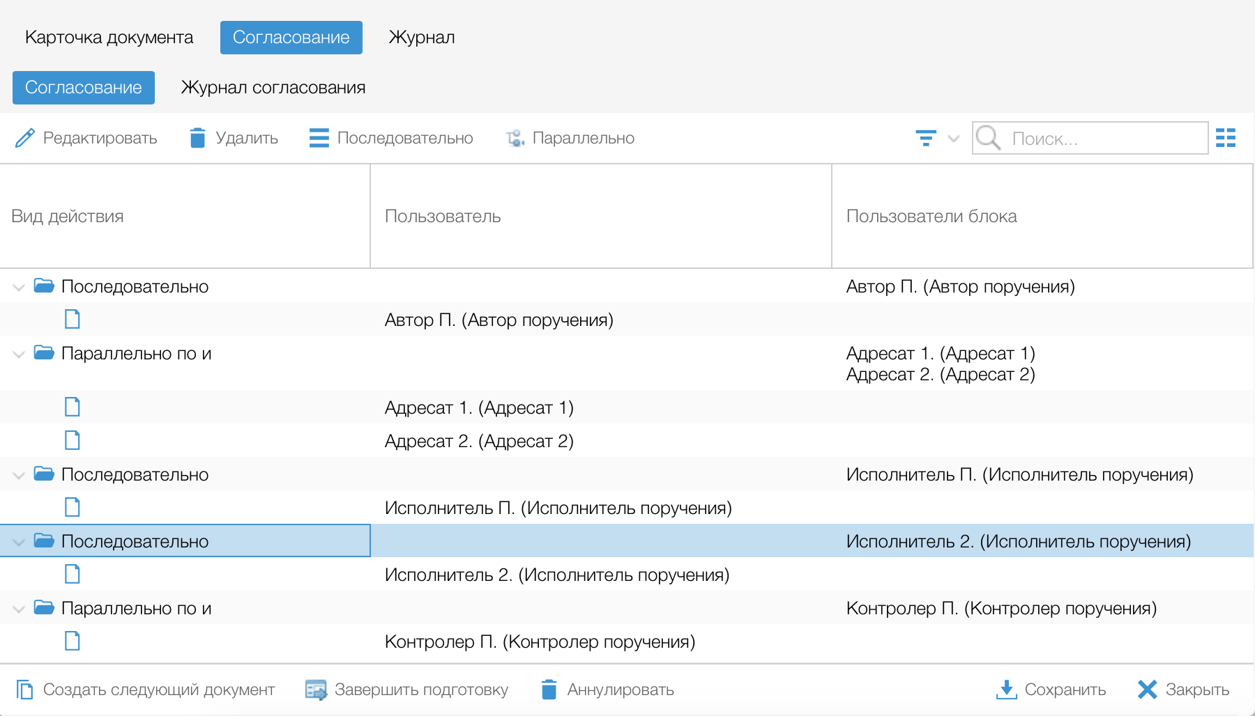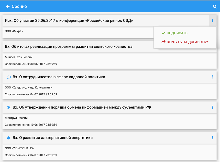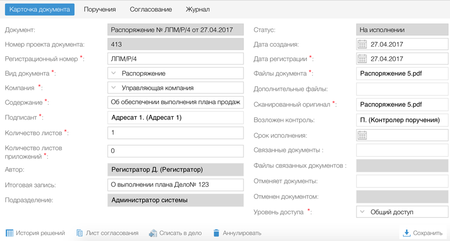 Карточка внутреннего документа: